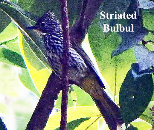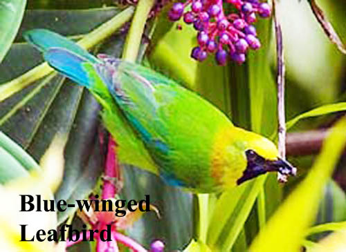 More open areas, and scanning from the temple, might produce Pin-tailed Green Pigeon, Wedge-tailed Green Pigeon, Mountain Imperial Pigeon, Changeable Hawk Eagle, Common Buzzard, Collard Falconet, White-rumped Falcon, Rufous-winged Buzzard, Brown-backed Needletail, Rosy Minivet, Scarlet Minivet, Slender-billed Oriole, Maroon Oriole, Black-headed Oriole, Violet Cuckoo, Blue-throated Barbet, Great Barbet, Blue-winged Leafbird, Orange-bellied Leafbird, Golden-fronted Leafbird, Yellow-bellied Fantail, White-throated Fantail, Common Iora, Striated Bulbul, streak-eared Bulbul, Black-headed Bulbul, Black-crested Bulbul or Asian Fairy Bluebird.
